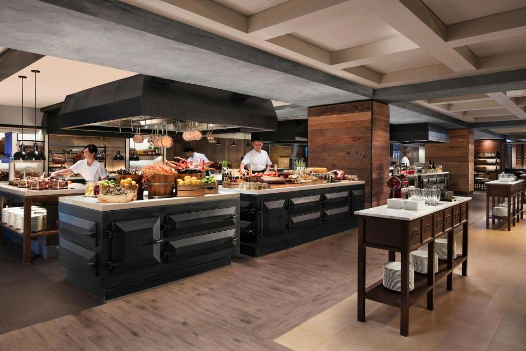 地元の人々からも高く評価されている、ライブキッチン型のオールデイダイニング。オープンキッチンでシェフが腕を振るう様子を見ながら、新鮮なシーフードや本格的なタイ料理、薪火で焼き上げる本格グリルなど、バラエティ豊かな多国籍料理をビュッフェスタイルで堪能できます。